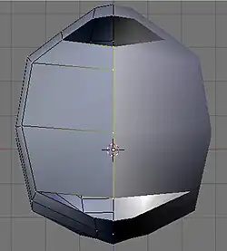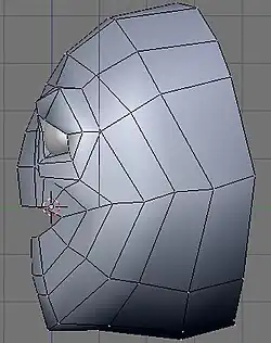 - Mova as novíssimas vértices expulsas adiante do centro da cabeça com G. Agradeça ao modificador Mirror e a Do Clipping, elas não podem ultrapassar o centro do plano (como em Fundindo a parte de trás da cabeça). Assim que elas tocam a linha central, elas se alinham ali e essencialmente se fundem com a linha central