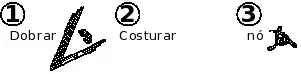 1. Prensar folhas; 2. Passar cola; 3. Colar capa