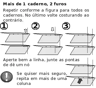 Se preferir, encaderne um único conjunto de folhas(chamado de caderno), conforme a seguir: