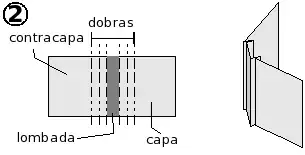- Imediatamente após a última demão de cola dobre-a sobre a lombada, e mantenha pressionado até que fique colada;