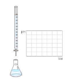 Esta solução terá um dado pH, de valor relativamente baixo, pois o ácido encontra-se ligeiramente dissociado. Ao adicionar-se uma base forte como por exemplo o hidróxido de sódio (NaOH), esta dissocia-se totalmente em solução, havendo então ânions OH- que podem combinar-se com o H+ "livre", formando H2O. Esta reação força a diminuição da concentração de H+ em solução; pelo princípio de Le Chatelier, o ácido terá de se dissociar um pouco mais para compensar esta "falta" de H+, atingindo-se novo equilíbrio entre ácido e a sua base conjugada. À medida que se acrescenta mais OH-, cada vez mais ácido se dissocia. Chega-se então a um ponto em que metade de HA que existia no início encontra-se sob a forma da sua base conjugada, A-: está-se a meio da titulação, forma adicionados 0,5 equivalentes de OH- ao ácido e o pH neste ponto é igual ao pKa do ácido.