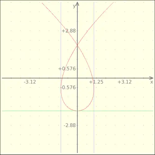 Os valores de jamais serão menores que zero e a função refletirá indefinidamente os valores quadráticos entre e , da mesma forma podemos ver que os valores de jamais sairão da faixa: . Se acompanharmos os valores das funções dos eixos e seu reflexo na função paramétrica perceberemos que teremos sobre a mesma um ponto que se desloca sobre a parábola, indo de a e depois voltando.