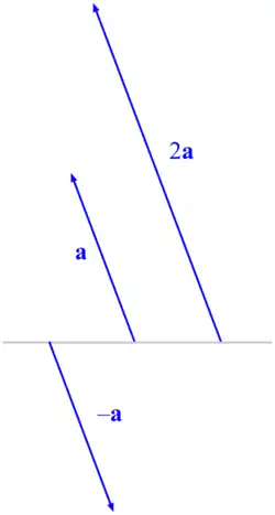 A representação de um vetor é comumente feita através de um segmento de reta com uma seta em uma das extremidades, o que indica o sentido em que o vetor evolui. A distância entre as duas extremidades é dada como a quantidade, amplitude, módulo que o vetor apresenta, enquanto que a sua inclinação informa a direção do mesmo. |