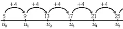 A seqüência também é indicada por: a0, a1, a2, ..., an, ... Os termos da seqüência fazem parte de um conjunto comumente indicado por S; Eles são uma seqüência em S.