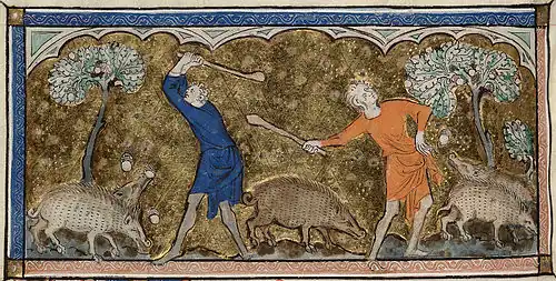 Os bosques de carvalho são tradicionalmente local de alimentação de porcos, os quais comem as bolotas caídas no chão sem que isso lhes cause problema algum. Esta prática é chamada na Inglaterra de pannage. Normalmente, essa prática ocorre no outono, quando as bolotas estão maduras, o que impede que os outros animais se intoxiquem com o consumo das bolotas nos pastos. A alimentação dos porcos com bolotas de carvalho é um ingrediente importante na confecção do famoso presunto espanhol presunto espanhol pata negra[6].