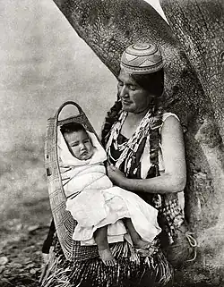 No século IX, os apaches, outro povo de língua nadene, começaram a povoar a região central dos atuais Estados Unidos, provavelmente procedentes da região do rio Mackenzie, no norte do Canadá[2]. A palavra "apache" vem de apacu, "inimigo". Porém os apaches chamavam-se a si próprios N'de o Inde, que significa "povo"[3]. Os apaches dividiam-se em vários grupos: jicarilla, mescalero, lipan, chiricahua, apaches ocidentais e apaches da planície e viviam, basicamente, da caça aos bisões-americanos (Bison bison), os quais forneciam carne para alimentação e couro para a confecção de tendas e roupas.
