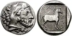 natal às margens do rio Aliakmón. Aiges foi a capital do reino que, com Amintas I, se estendeu além do rio Axión até à Península de Calcídica.