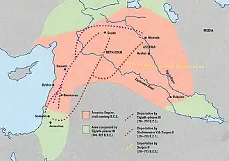 A primeira diáspora do povo hebreu pode ser anotada quando Sargão II, usando da política que era comum aos assírios, espalhar os povos conquistados, obrigou os hebreus a se mudarem após conquistar o reino de Israel.