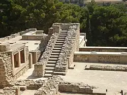 Os palácios típicos possuíam vários pisos e isso pode ser atestado pelas ruínas de grandes escadarias. Presume-se que o Palácio de Cnossos tivesse dois pisos na parte ocidental e quatro na oriental.