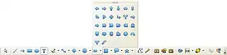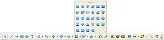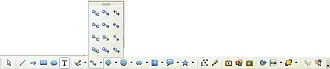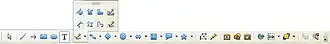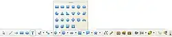Cada botão da barra de ferramentas possui uma função específica. às vezes estas funções divididas em vários modos e funcionamento e, estão contidos no mesmo botão. Quando isso ocorre, o botão possui uma seta preta em seu canto superior. mantenha o ponteiro do mouse pressionado sobre esses botões para abrir as opções e escolher o modo desejado.