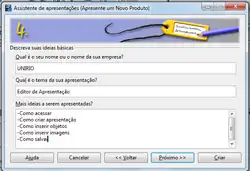 Na janela 4 o usuário poderá fornecer algumas informações básicas sobre a apresentação.