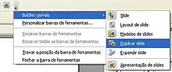 - Através da barra de ferramentas Apresentação -> Duplicar Slide