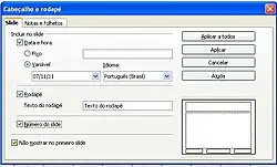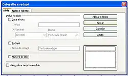 - Selecionar o slide que não deseja exibir o rodapé e depois clicar no menu Exibir->Cabeçalho e rodapé e desativar as opções.
