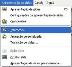 - Exibir a apresentação no modelo Normal e selecionar o objeto, depois clicar no menu Apresentação de Slides -> Interação.