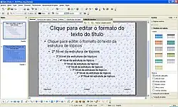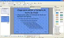 - Painel de Slides: utilizado para conter os slides já criados pelo usuário como parte integrante da apresentação que está sendo editada;