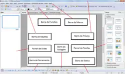 Ao criar uma Apresentação o usuário terá acesso a área exibida ao lado: Tela da Aplicação Impress