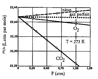 Experimentalmente, à baixa pressão, observe-se que muitos gases obedecem à equação de estado dos gases perfeitos. Porém há exceções. Por exemplo, o produto PV , em vez de ser constante numa certa temperatura, aumenta ou diminui quando P aumenta de zero para algumas atm.