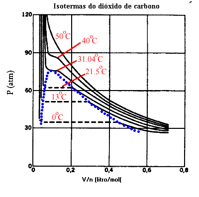 De um outro lado, a 21,5oC, CO2 se liquefaz quando a pressão chega a 60 atm.