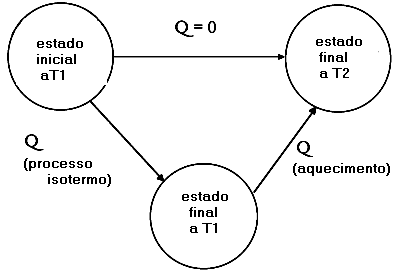Exemplo: procurar a mudança de associada à transformação . É inútil de medir-la se conhecermos já os calores de . Em efeito, como H é uma função de estado, a o mesmo valor que a transformação de A em C seja efetuada diretamente ou passando pelo intermediário B: