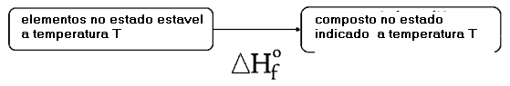 Entalpia de formação padrão: É o calor liberado ou absorvido,, quando há formação de um mol do composto, sob 1 bar e a 298K a partir dos elementos no seus estados padrões.