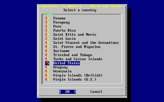 Selecione o país apropriado com as setas do teclado e aperte Enter.