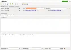Usando o GNU Health, os médicos têm a possibilidade de abrir e fazer uma Avaliação a partir da janela do paciente. Esta avaliação pode ser ligada a um Compromisso existente ou apenas criar um novo.