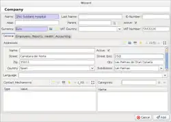 - Abas: Tryton lhe permite ter vários registros abertos ao mesmo tempo. A seção "Abas" da imagem mostra a forma atual.