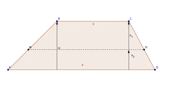 Em um trapézio, cujas bases medem a e b, os pontos M e N pertencem aos lados não-paralelos. Se MN divide em dois outros trapézios equivalentes, calcule a medida de MN em função de a e b.