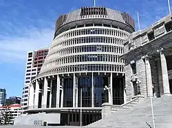 *Beehive Building – O Beehive é o nome normalmente usado para o prédio do executivo no complexo do Parlamento da Nova Zelândia. Seu formato de colmeia ou casa de abelhas.