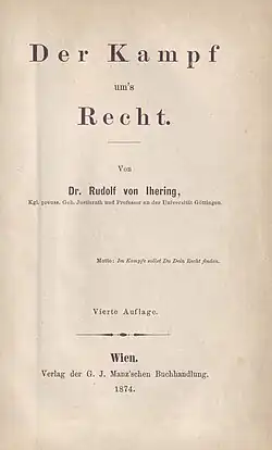 Em 1872, o professor alemão de direito Rudolf von Ihering proferiu uma palestra na Sociedade Jurídica de Viena intitulada A luta pelo direito (Der Kampf ums Recht). Tal palestra foi, posteriormente, transformada em um livro homônimo que se tornou um dos clássicos da literatura jurídica. No livro, Ihering defende que o direito é fruto da luta dos homens pelos seus direitos. Ou seja, dentro da história do direito, o ser humano não ocuparia um papel passivo, mas seria, em vez disso, o principal agente transformador das leis e do direito.