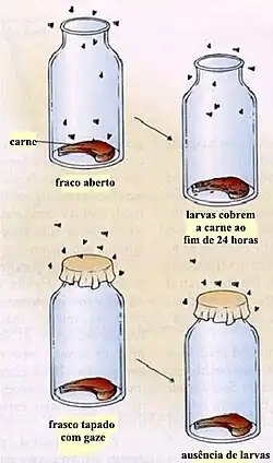 Francesco Redi, numa suposição básica, demonstrou claramente que a vida não é gerada espontaneamente, acreditando que a Terra, bem como os seus constituintes, foram criados por um ser supremo e onipotente e, portanto, sobrenatural. Para testar a sua hipótese, Redi realizou a seguinte experiência: