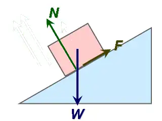 Na figura acima, temos um corpo colocado em um plano inclinado. Naturalmente, temos duas forças sendo exercidas sobre ele:
