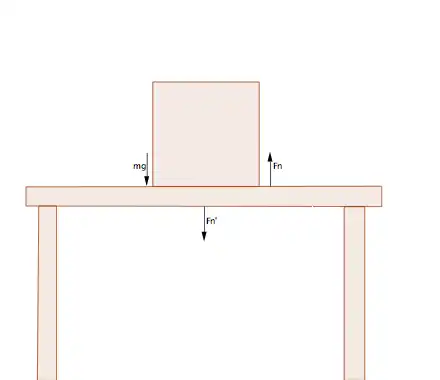 Para este corpo estar em equilíbrio, precisamos que a soma (vetorial) de todas as forças sobre ele sejam zero. Assim, é necessário que a mesa exerça sobre ele outra força, igual em módulo mas de sentido contrário, ou seja, a força Fn.
