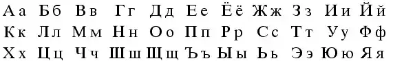 Há um total de 33 letras no moderno alfabeto russo. Duas dessas letras não tem som; elas apenas mudam o som de outras letras nas palavras. Veja abaixo o alfabeto cirílico: