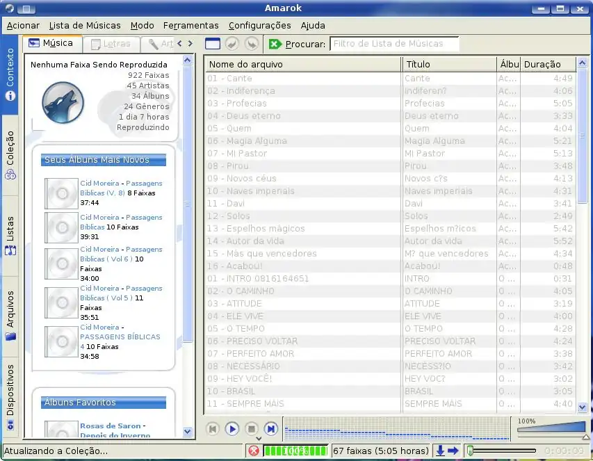 Os formatos mais comuns de música digital são MP3, Ogg Vorbis e wma. Recomendo usar sempre Ogg Vorbis (.ogg). Adiante, em ouvindo CDs, veremos como copiar seus CDs para o computador com este formato.