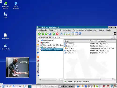 print:/ Representa mais um dos escravos úteis implementados pelo KDE. Para acessá-lo, apenas digite print:/ no campo de endereço do Konqueror. print:/ não fornece puramente um acesso somente leitura ao seu subsistema de impressão, mas também permite modificar as preferências de suas impressoras, de seu sistema de impressão, e deixa você criara novas classes e impressoras.