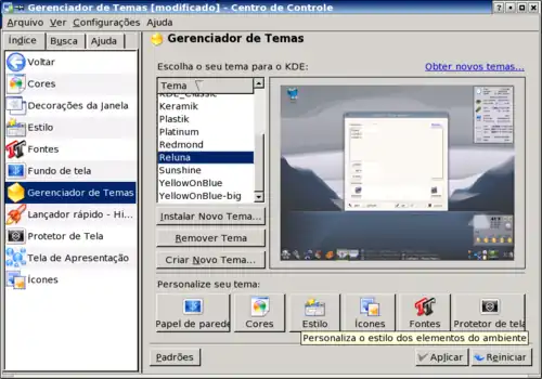 Ele é responsável por muitas das personalizações que você pode fazer no KDE, como deixar parecido com o Windows XP ou o Macintosh, conforme visto acima.