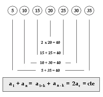 - a1 e an são, respectivamente, o primeiro e o último termo da progressão (ou pelo menos, do subconjunto da progressão sobre o qual será feita a soma)