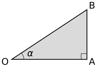 As funções trigonométricas são oriundas das razões dos lados dos triângulos. Com base no triângulo retângulo ao lado, o segmento é a hipotenusa (lado oposto ao ângulo de 90°), o segmento é o cateto adjacente (ao lado) do ângulo α e é o cateto oposto ao ângulo α:
