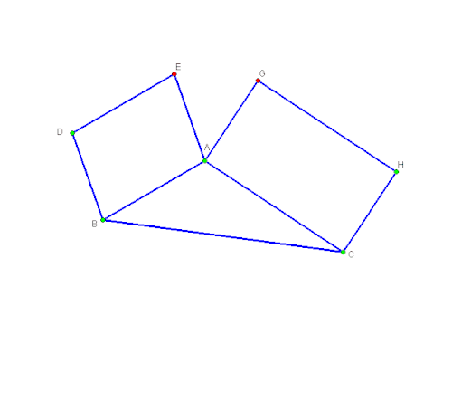 Vamos inicialmente construir o terceiro paralelogramo, seguindo o raciocínio de Pappus, e posteriormente provaremos que a relação entre as áreas é satisfeita. Considere o triângulo ABC e os paralelogramos ABDE e ACFG., figura 15.