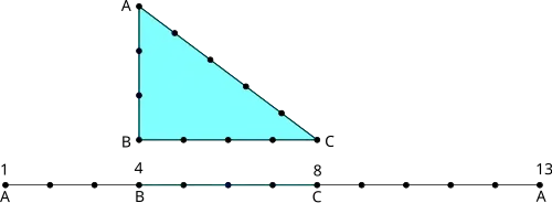 Os antigos egípcios utilizavam triângulos retângulos na construção de templos e pirâmides e na mensuração de terrenos.Com uma corda dividida em doze partes iguais por treze nós, os agrimensores egípcios construíam triângulos retângulos a partir da sobreposição do primeiro e do décimo terceiro nós (EVES, 2004), como ilustrado abaixo.
