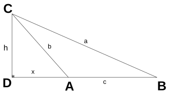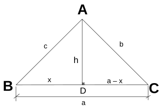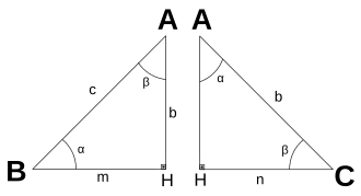 Seja a altura AH, relativa ao lado BC, tal que AH divide o triângulo ABC em dois outros triângulos, BHA e CHA, ambos retângulos em H, como ilustrado na figura 7.