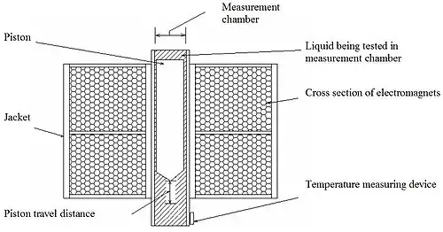O viscosímetro de pistão oscilante ou viscosímetro eletromagnético consiste de um pistão metálico que se move dentro de uma câmara cheia de fluido, sob a influência de um campo eletromagnético oscilante. O período da oscilação do pistão é proporcional à viscosidade, para uma dada intensidade do campo. O próprio medidor consegue manter a temperatura do fluido constante durante a medição.