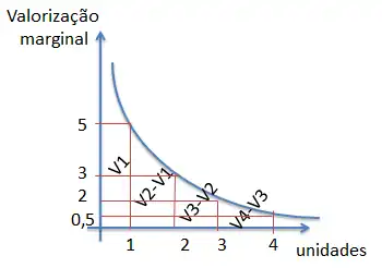 Este exemplo permite concluir que, há medida que aumenta a disponibilidade de um bem, o acréscimo de valor que estamos dispostos a pagar.