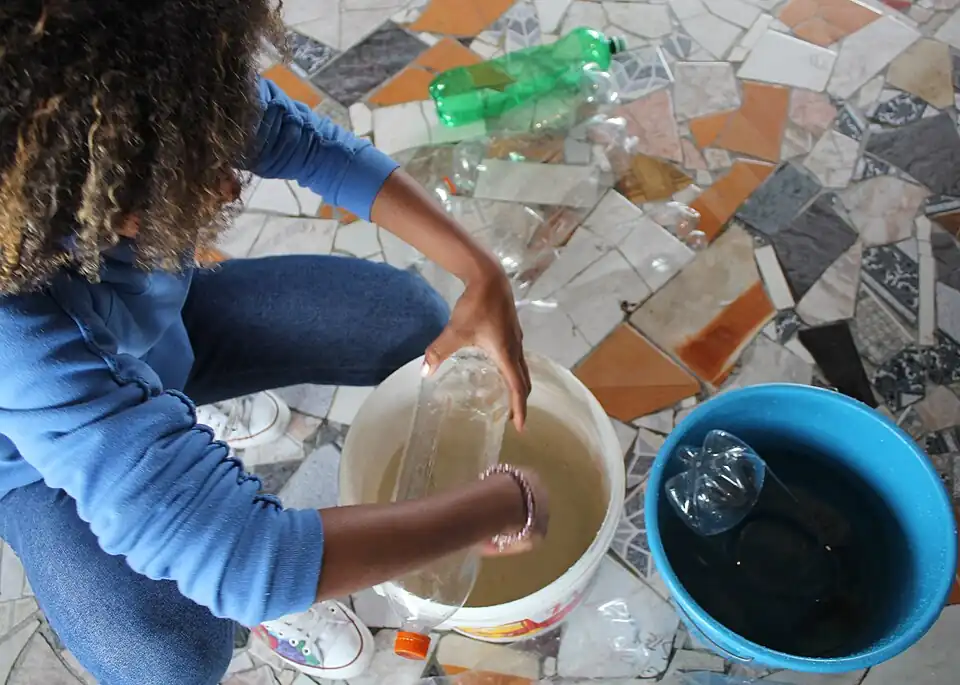 2. Lave as garrafas já cortadas para retirar o resto de refrigerante, suco etc.