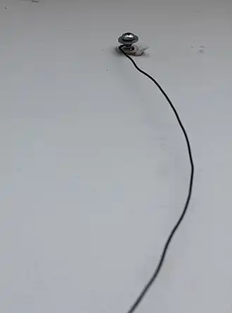 4. Meça e corte o arame de acordo com a altura que você deseja para seu jardim vertical. Insira a arruela no parafuso e enrosque a extremidade do arame no parafuso (duas a três voltas).