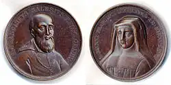 - São Francisco de Sales: é o padroeiro dos jornalistas e dos escritores, devido a sua intensa produção literária, e dos surdos, por ter tomado conta de um e criado uma linguagem de símbolos para se comunicar com ele. Bispo da cidade suíça de Genebra, viveu no século XVI, na região da Saboia, atual fronteira franco-ítalo-suíça. Foi mentor de São Vicente de Paulo e de Santa Joana de Chantal. Com esta, criou uma ordem monástica, a Ordem da Visitação. Em homenagem a São Francisco de Sales, São João Bosco nomeou a organização que criou no século XIX de Congregação dos Salesianos.