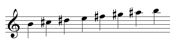 Esta é a escala em si maior, escrita com os acidentes que identificam a tonalidade