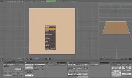 Em primeiro lugar, elimine o cubo padrão e adicione um plano (Space, Add, Mesh, Plane ). Rotacione o plano assim que aparecer na vista superior (Ortográfica). Passe para o Edit Mode e subdivida (pressione W, então selecione subdivide multi) informando um valor entre 50 e 80.