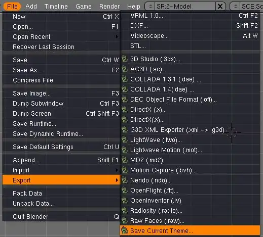 Para salvar um tema, clique em "File - Export - Save Current Theme":
